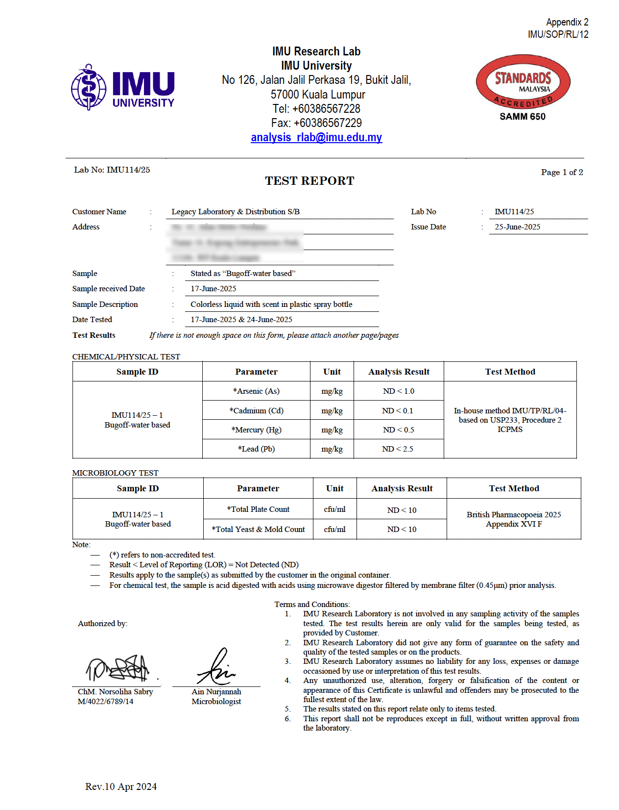 Bugoff has been rigorously tested by the IMU Research Lab (IMU University) to ensure it meets the highest medical standards for family safety.